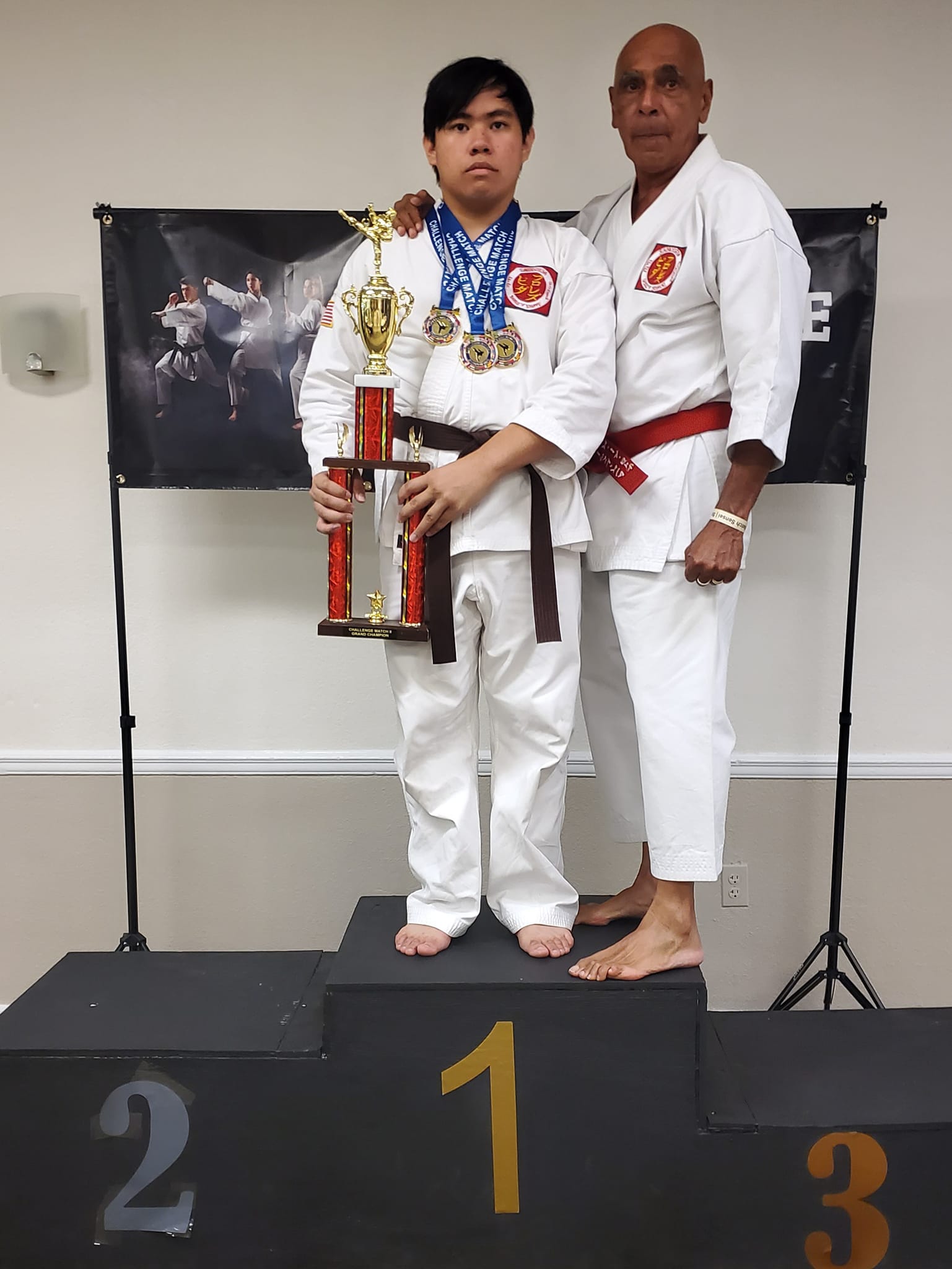 Warriors Red Dragons Karate Club Dojo #2/ Duro Y Suave Manos Vacias founded by Peter Flores Sr Soul ~Ki competed Saturday, August 26, 2023 in Challenge Match II hosted by Jose Cordero Shihan at the Ramada Inn, Kissimmee Florida. Our ten students brought back 31 Awards inclusive of 2 Grand Championship and 9 1st place. Gabriel Cuenca in the Advance Adult Division captured three 1st Place in Kata Kubodo and Kumite and Grand Championship in Kata. A special shout out to my Sensei The Legendary Grandmaster Wildcat Molina who laid my foundation, Apache Cruz Hanshi my Weapons Mentor and Dojo Brother and Tanka Ramos who refines my understanding of Goju Ryu Kata as originally taught in Okinawa under Taira Sensei. Our greatest reward was facing our fears, making new friends and learning by Winning or Losing for Learning NEVER CEASE as we continue The Challenges in Life along The Warriors Path. May We Have The Faith To Continue, The Wisdom To Pass It On, The Power To Succeed. Con Respecto...Arigato Gozaimashita Leonardo Bravo-Arteaga Sempai Grandchampionship.